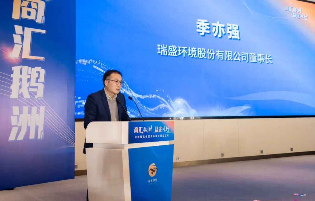 近日,在和桥镇举办的“商汇鹅洲 益企同行”优化营商环境政银企活动中,瑞盛环境股份有限公司董事长季亦强作为环保行业企业代表发言,分享了在镇党委、政府及各部门支持下实现高质量发展的实践与成果。董事长在发言中表示,瑞盛环境的成长离不开当地持续优化的营商环境,正是这片“沃土”培育出了国家级专精特新“小巨人”企业。